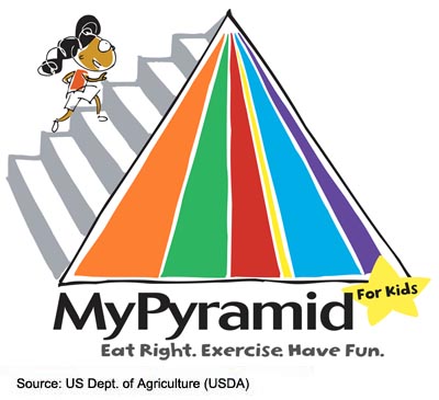 To find more information about the Dietary Guidelines for Americans 2005 and to determine the appropriate dietary recommendations for your child’s age, sex, and physical activity level, visit the Online Resources page for the links to the Food Pyramid and 2005 Dietary Guidelines sites. Please note that the Food Pyramid is designed for persons over the age of two who do not have chronic health conditions.