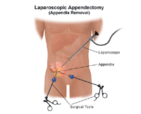 This procedure uses several small incisions and a camera called a laparoscope to look inside the abdomen during the operation. Under anesthesia, the instruments the surgeon uses to remove the appendix are placed through several small incisions, and the laparoscope is placed through another incision. This method is not usually performed if the appendix has ruptured.